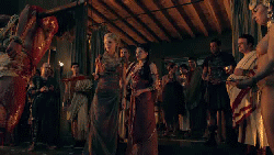 Lucretia: "News greeted with joy. I would have her here of your final moments, in the arena you held so dear. And the crowd which once cheered your name spitting upon you. And when you fall, it will not be as champion. But as a common slave, absent honor and absent glory, and your name forever lost to history."