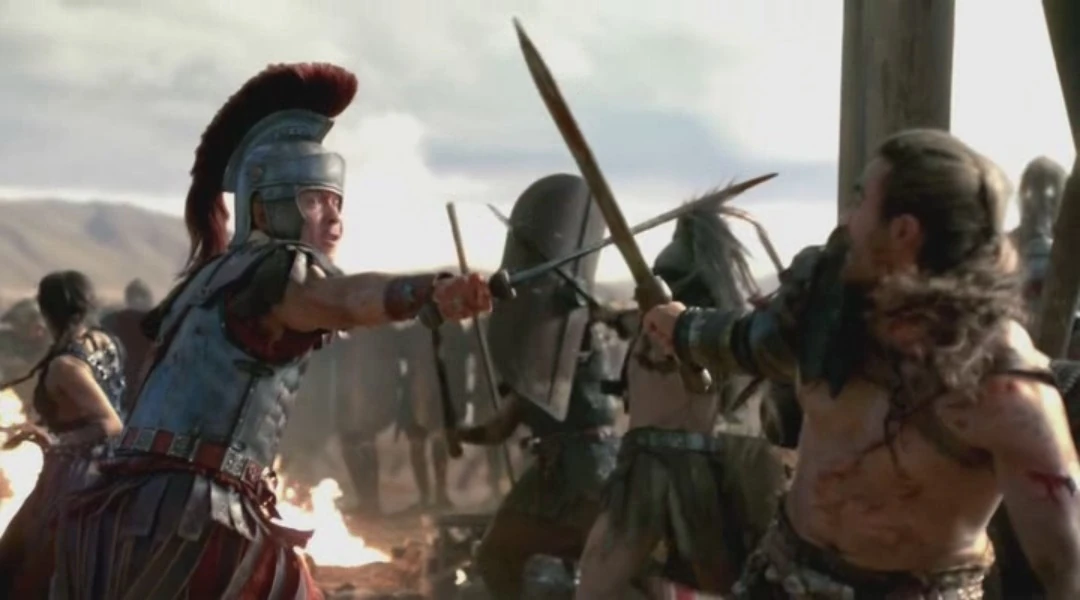 Caesar fighting Gannicus during the final Battle.