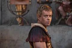 At the battle against Crixus and his forces, Caesar is sore (and therefore unable to ride a horse) and angry. He kills many rebels including Brictius and is on the verge of battling Agron when Tiberius rides by and slashes the former gladiator, severely wounding him and angering Caesar.