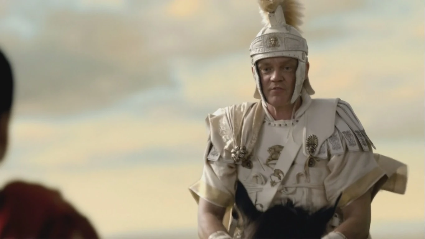 In his only appearance in the series Pompey adorns a bright white armor and galea, embossed with brass trims and decorations befitting for a man of high station.