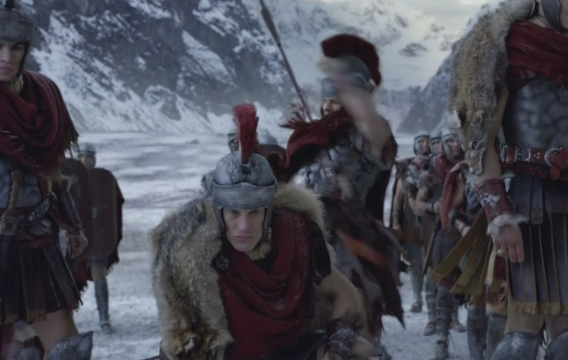 At the Roman encampment in the mountains, Crassus has already devised a trap for Spartacus using the dead body of Donar, although Spartacus and his Rebels survive. To his surprise and irritation, he finds Caesar and Kore in the mountains, the latter of which requests words with the Imperator. although she can't find a proper way to break them. The two lovers share another night in their tent, although late in the night Kore contemplates her future. In the morning, Crassus wakes to find a Roman guard killed and that Kore had run off in the night. He infuriatingly questions Caesar as to why he brought her here in the first place. As Crassus prepares to investigate the ditch they build, he takes Caesar and Tiberius alongside him, he triggers a trap by Spartacus. As Crassus knelt down just in time for an arrow to miss him, raining arrows and spears fly from the Rebels on the walls as Crassus and the Romans retreat. Before Crassus escapes, however, he sights a smirking Spartacus, who think he won his first victory over Crassus himself.