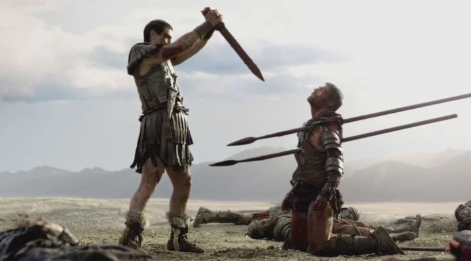 Crassus, about to 'finish off' Spartacus.