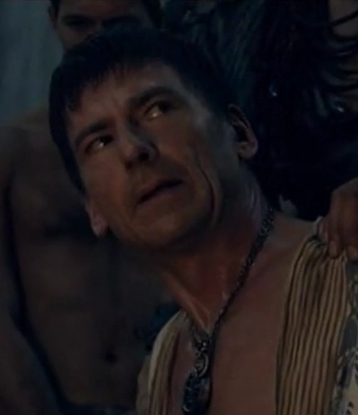 The Dominus is first seen anally penetrating his sex slave Chadara, before instructing his body slave Nasir to enter him as well. The sexual exploits are interrupted, however, by Spartacus and the other Rebels, as they attack his villa in an attempt to secure the whereabouts of Naevia. With all the guards slaughtered and all the slaves freed, the Dominus was captured by Rabanus and kept alive for interrogations by the rebels. When Spartacus announces who he is, the freed slaves excitedly whisper to each other, before the Dominus commands them to stay quiet, to which they instinctively obey. Crixus then uses this opportunity to find information on Naevia's whereabouts.