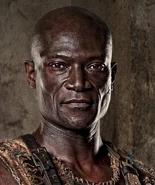 Oenomaus is a central character in Spartacus. He is the gladiator trainer in Batiatus' Ludus, traditionally referred to only by the title of "Doctore". At a young age, he was recruited into the Ludus by former lanista Titus Batiatus, whom he came to see as a father figure. After the downfall of the House of Batiatus, Oenomaus believed he had lost his purpose in the world and retired himself to die in The Pit. However, with the help of Spartacus and the other Rebels, he eventually finds a new purpose and joins the Rebels' cause, quickly being recognized as a mentor. He was married to Melitta before her death.