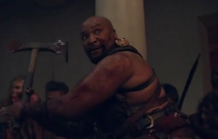 Next Sanus takes part in the besieging of the Roman city in which he kills many Romans. To Spartacus' dismay, Sanus, alongside Nemetes, Saxa, and other Rebels, prepare to personally execute some Roman civilians. Spartacus angrily tells them to stand down and after the city has been taken tells them that no more blood will be shed.