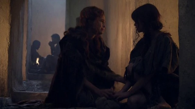 When they return to the group the next day, Gannicus stays close to Sibyl and when Saxa rushes to greet him, he does not embrace her. It is clear that Saxa knows something has happened, but she says nothing.