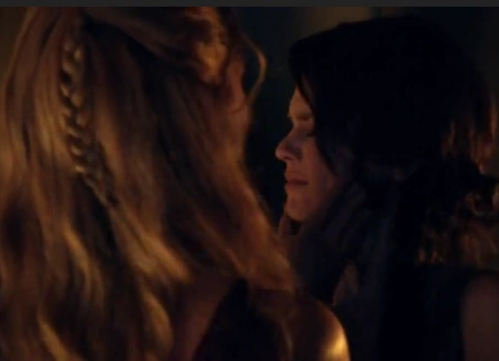Gannicus and Sibyl kissing.