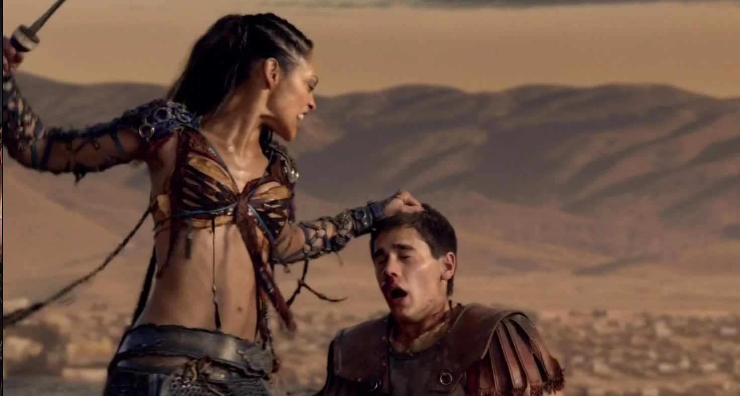 When an injured Tiberius hobbles towards an amused Caesar, Kore runs at him in anger to claim her vengeance and kills Tiberius by stabbing him in the back. Spartacus then tells her in anger that she has just taken 500 lives. She replies that Crassus will still make the trade, offering to go in Tiberius' place.
