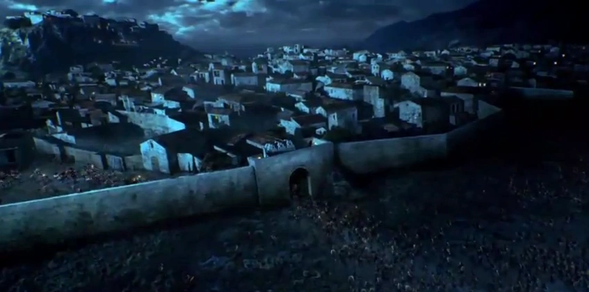 During a sparring match with Naevia, the butcher, Diotimos, is summoned by Spartacus who wishes to speak with him. Despite having some fear as to why, he consents and goes to Spartacus's tent. Spartacus explains that they need to find a city to occupy during the winter and the city Diotimos is from would serve their needs. It's a walled city on the water and mountains to the west so they would have both natural and manmade fortification. But first, they need to get inside and take it over, which is no easy feat with both the branding of slaves and the inability to bring weapons beyond the wall.